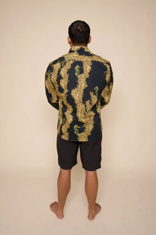 Limu Kala Gold Long Sleeve Tailored Aloha Shirt