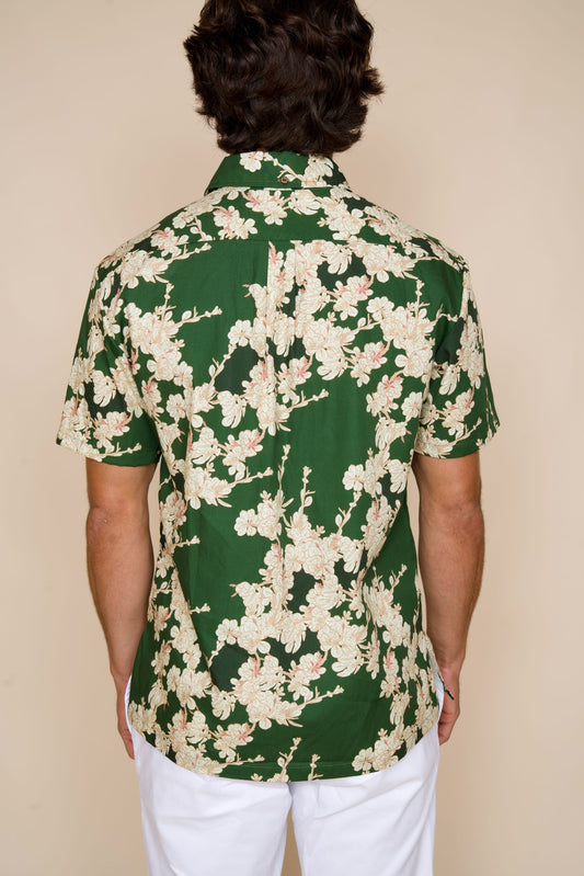 Kaniakapūpū Lehua Green on White Aloha Shirt