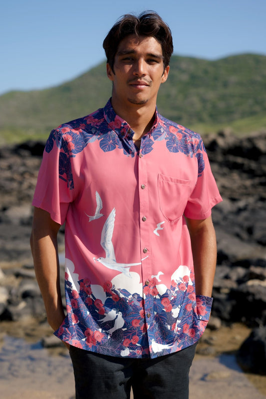 Manu-o-Kū & Hau Tree Pink Aloha Shirt (Iron Free)
