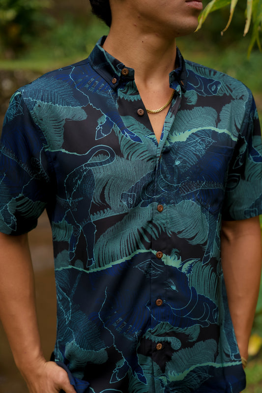 Kamapua'a Navy Aloha Shirt (Iron Free)