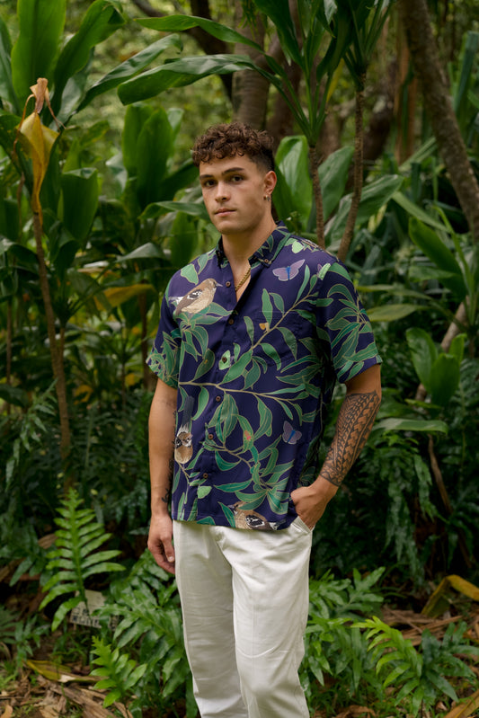 ‘Elepaio & Koa Aloha Shirt (Iron Free)