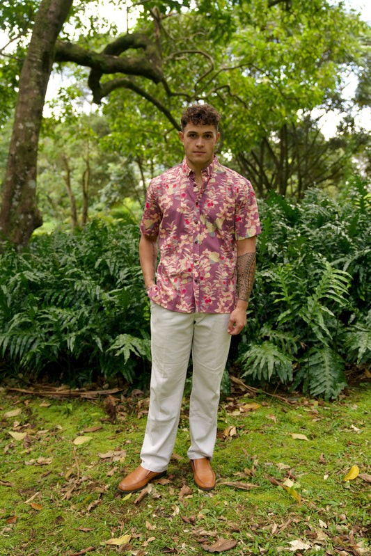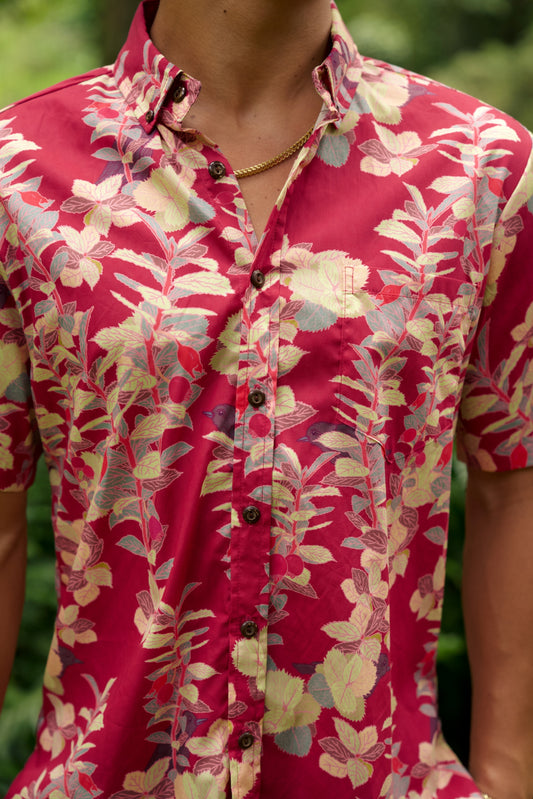 ‘Ōhelo & ʻŌmaʻo Maroon Aloha Shirt