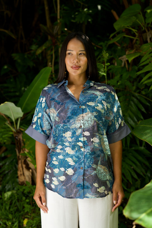 Honu Women's Kimono Sleeve Aloha Shirt