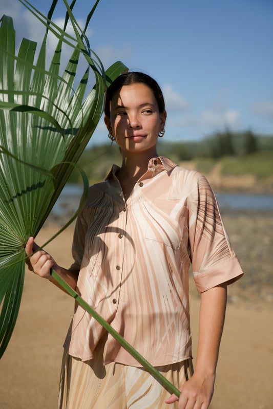 Loulu Beige Women's Kimono Sleeve Aloha Shirt