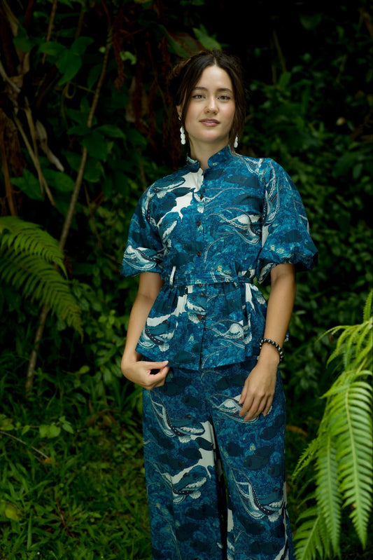 Māmaki & Butterflies Tie Waist Blouse