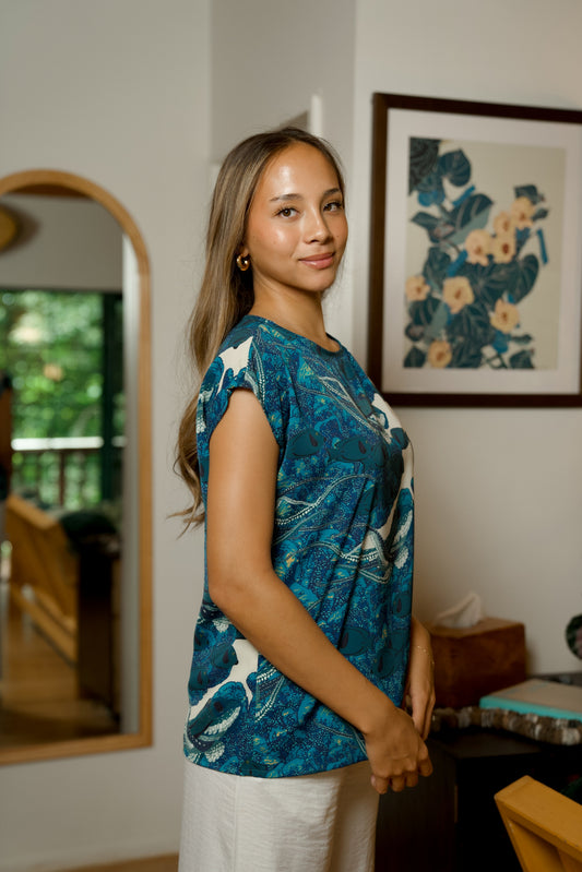 Hidden He‘e Cap Sleeve Blouse