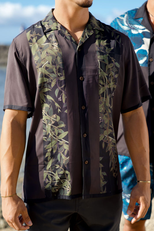 Maile Black Vintage Cut Aloha Shirt (Iron Free)